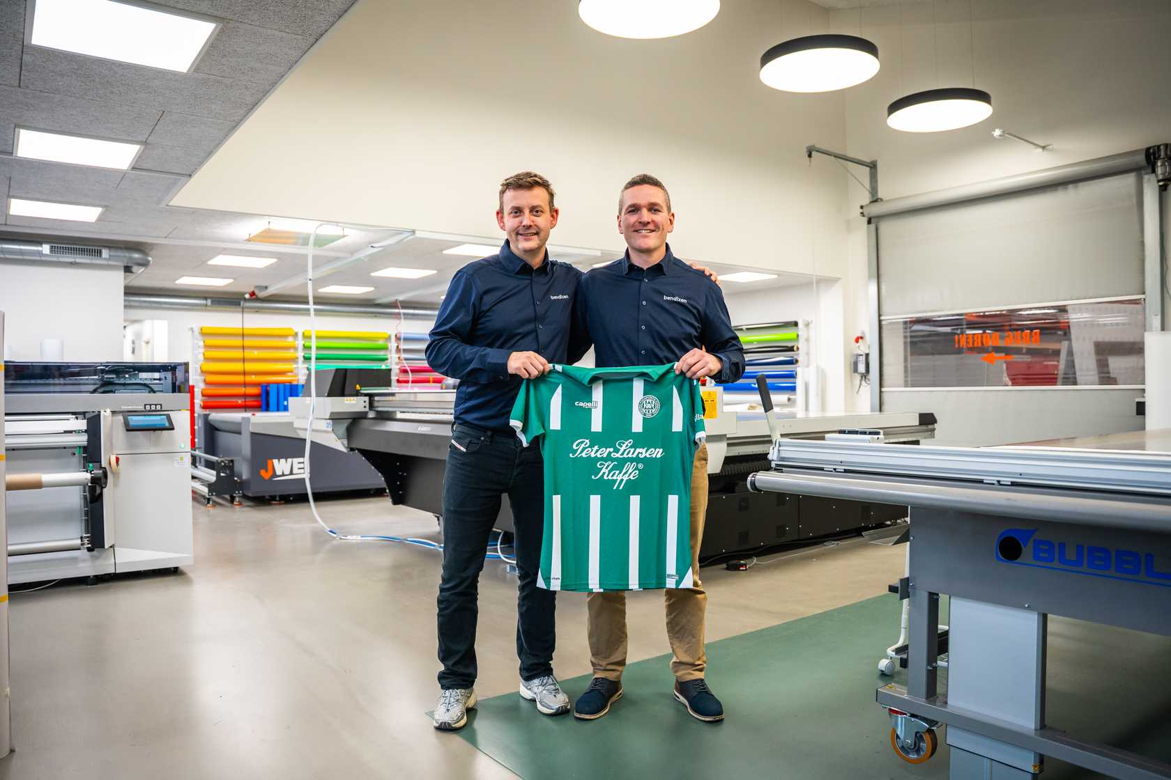 ”Vi vil gerne det lokale erhvervsliv, og vi har i høj grad valgt partnerskabet med VFF for at blive mere kendte lokalt. Vi synes, det er helt oplagt at bruge synligheden til at inspirere til, hvordan vi kan skabe synlighed for mange forskellige typer virksomheder,” siger Thorbjørn Kjellerup og Morten K. Vammen.