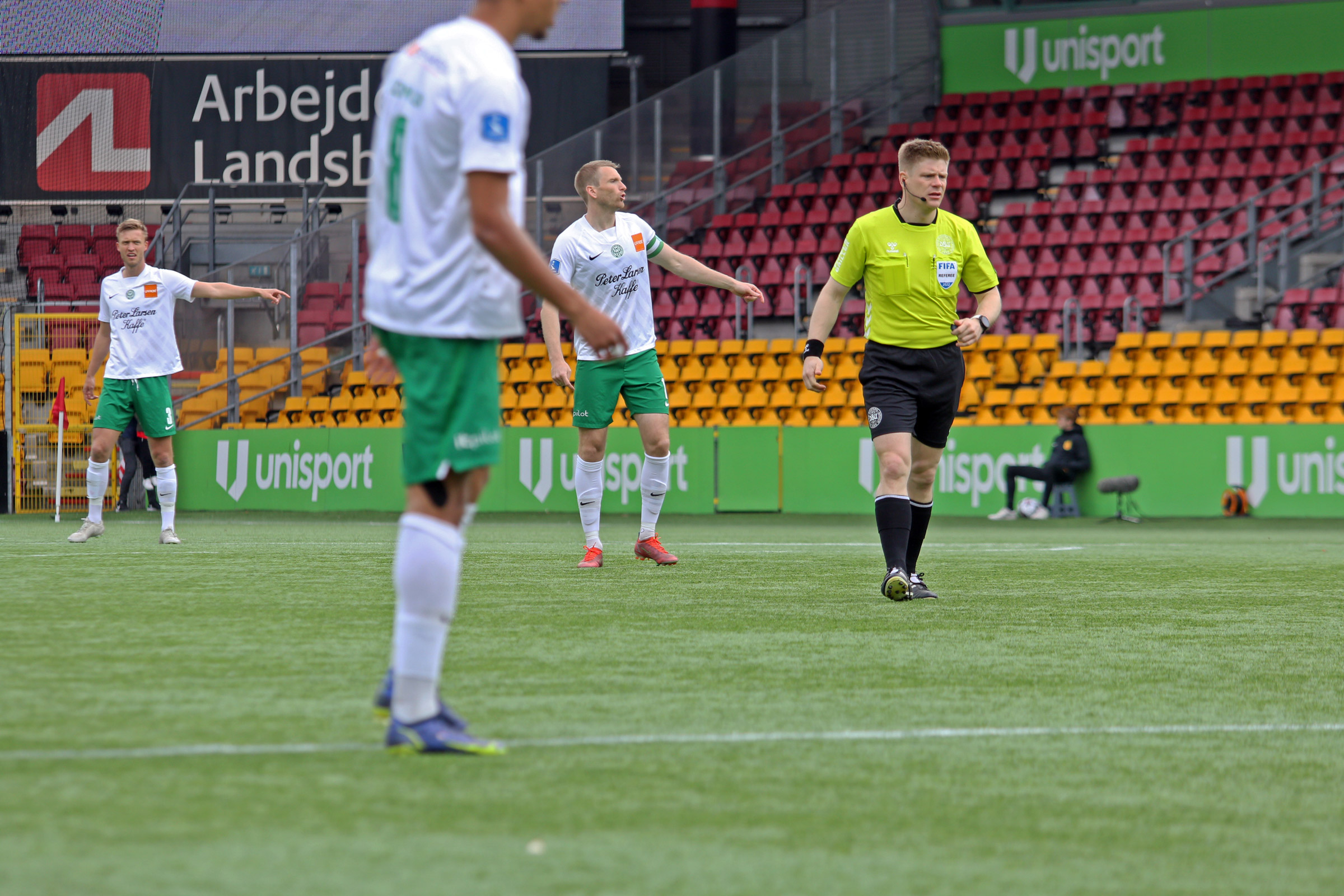 Viborg forsøgte at svare igen, men manglende præcision i afleveringerne betød, at det offensive spil havde svært ved at komme til at flyde for Friis´ tropper. I modsatte ende fortsatte FCN med at skabe chancer, og i det 66. minut var det kun en clearing på målstregen af Grot, der hindrede Kian Hansen i at heade et hjørnespark i mål.